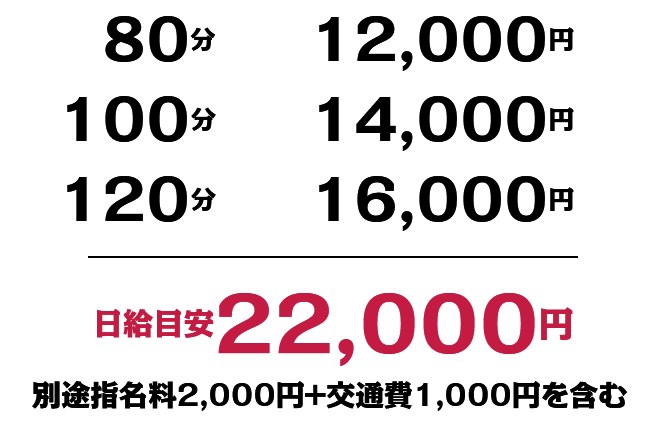 ■週1からOK!完全自由出勤! ※出勤予定は女性にお任せしておりますが、前もって予定を決めて頂きコンスタントに出勤して頂く事をオススメします。 ※短期・単発でもOKです。 |